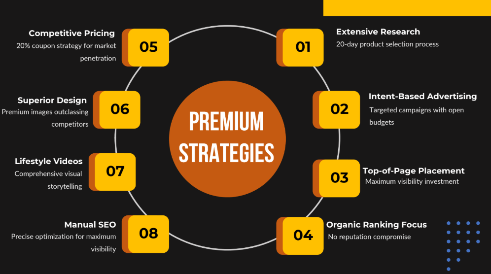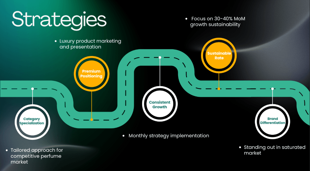 Operating in one of Amazon's most saturated categories - perfumes. The challenge was positioning premium Dubai-based perfumes against established competitors while achieving consistent growth.