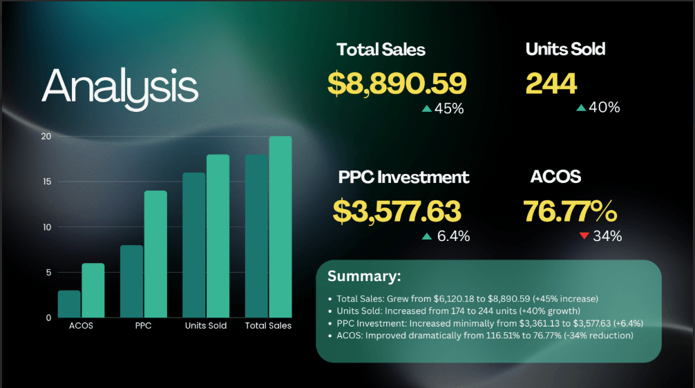 Case Study 1: From 116% ACOS to 76% ACOS - Growing Sales by 45% While Cutting Ad Waste by 34% in One Quarter